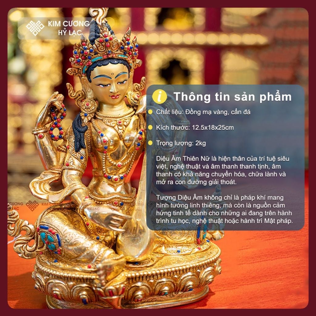 Tượng Diệu Âm Thiên Nữ 25CM - Chế Tác Thủ Công Nepal [Kim Cương Hỷ Lạc] Tượng Phật Mật Tông Đồng