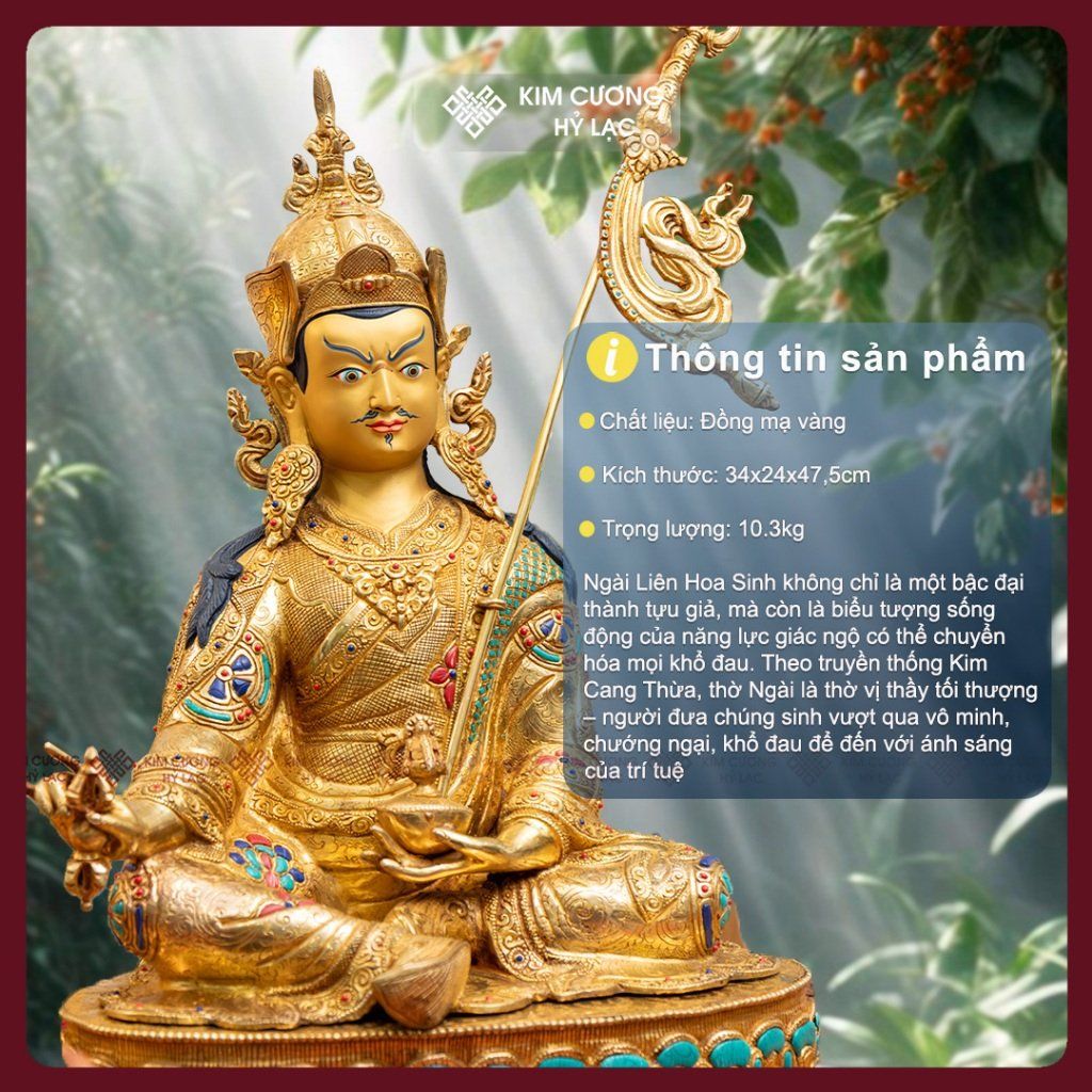 Tượng Liên Hoa Sinh Đồng Mạ Vàng Nepal 47cm [Kim Cương Hỷ Lạc] Tượng Đồng Nepal Hiếm Có