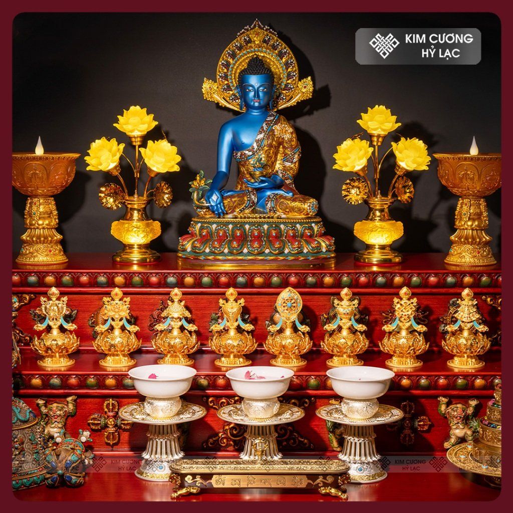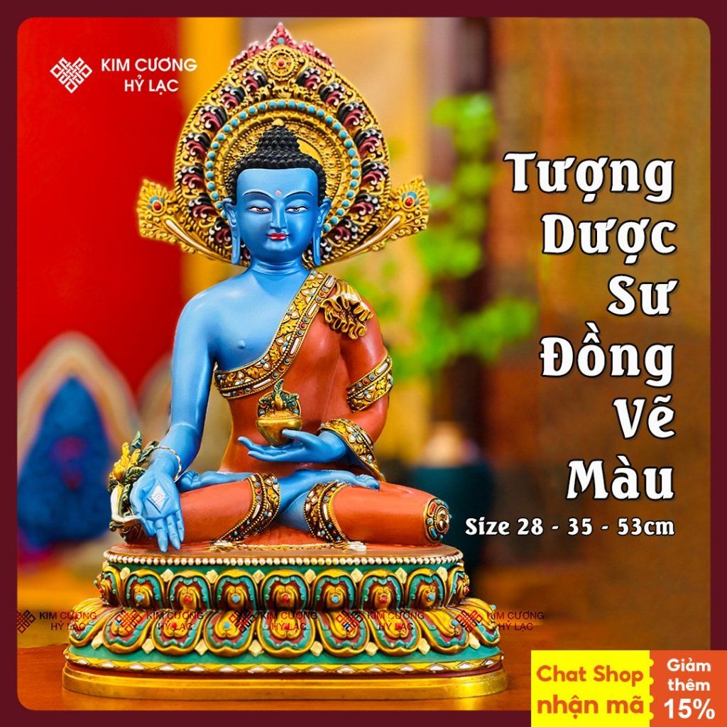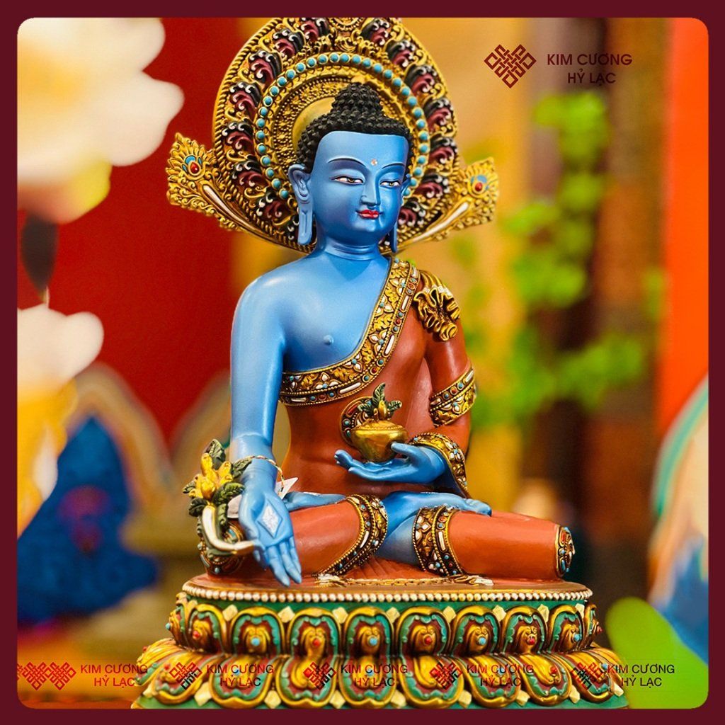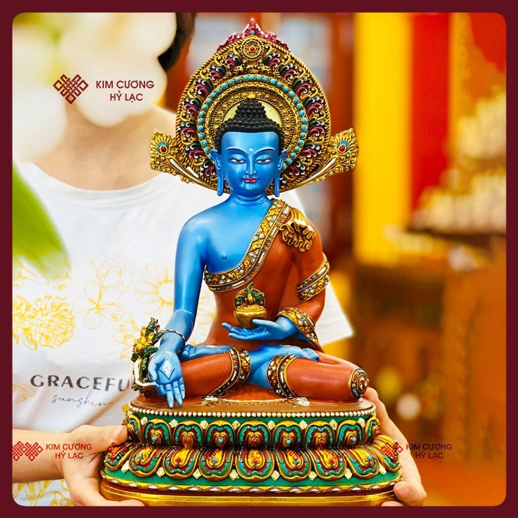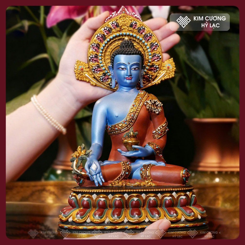 Tượng Phật Dược Sư Lưu Ly Quang Vương Phật [Kim Cương Hỷ Lạc] Tượng Dược Sư Đồng Vẽ Màu Cao Cấp