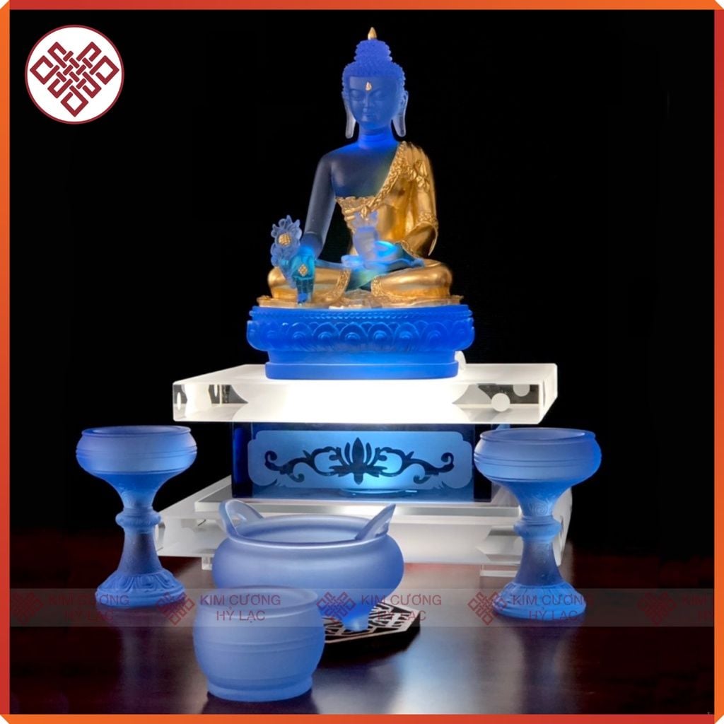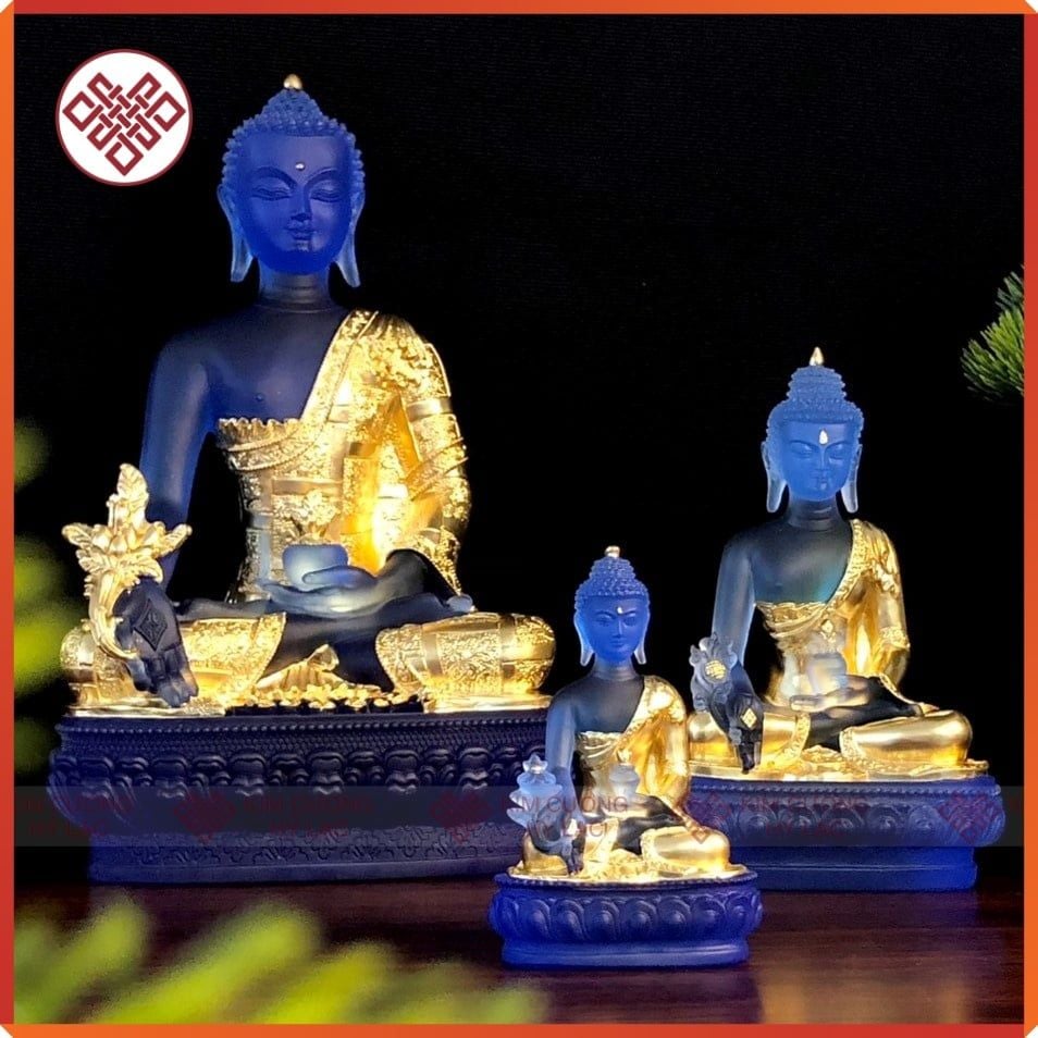 Tượng Phật Dược Sư Mật Tông [Kim Cương Hỷ Lạc] Lưu Ly Chất Liệu 100% Lưu Ly Cao Cấp 19cm