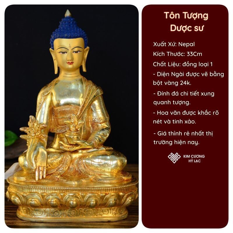 Tượng Phật Dược Sư Mật Tông [Kim Cương Hỷ Lạc] Nepal 33Cm