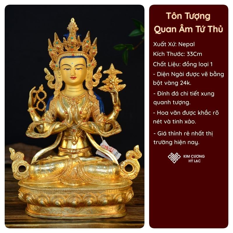 Tượng Phật Quan Âm Tứ Thủ Mật Tông [Kim Cương Hỷ Lạc] 33 Cm Nepal