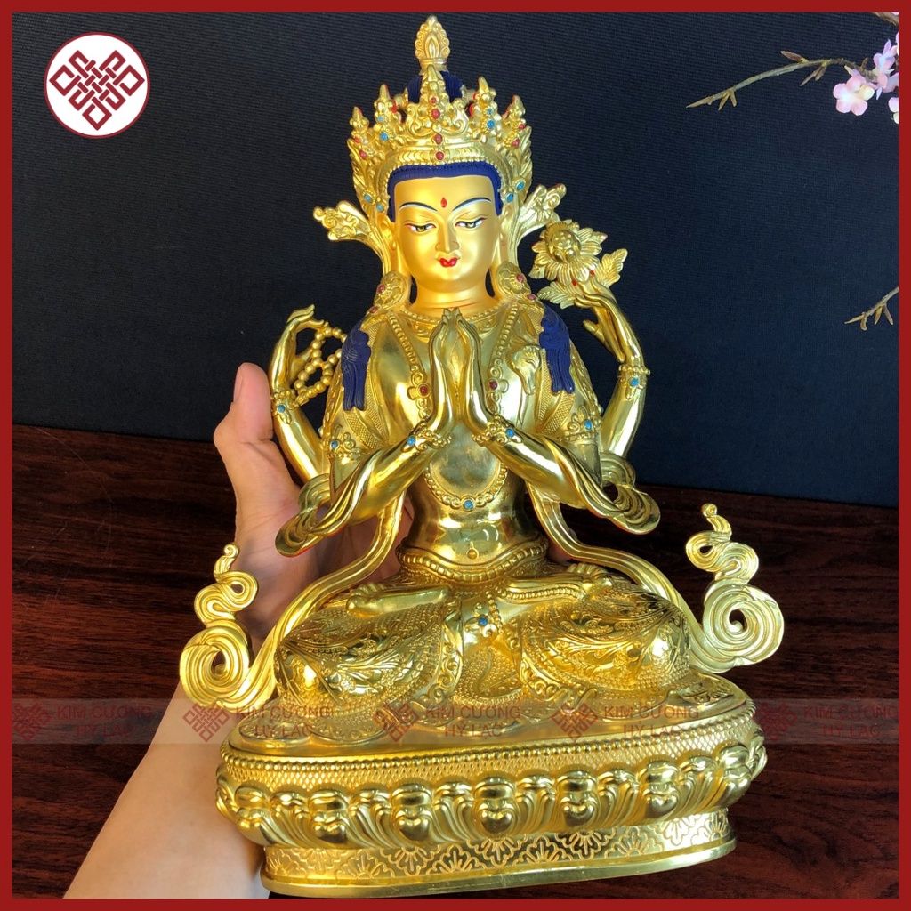 Tượng Phật Quan Âm Tứ Thủ Mật Tông [Kim Cương Hỷ Lạc] Đài Loan Hàng Loại 1 - Kích Thước 17-23-33Cm