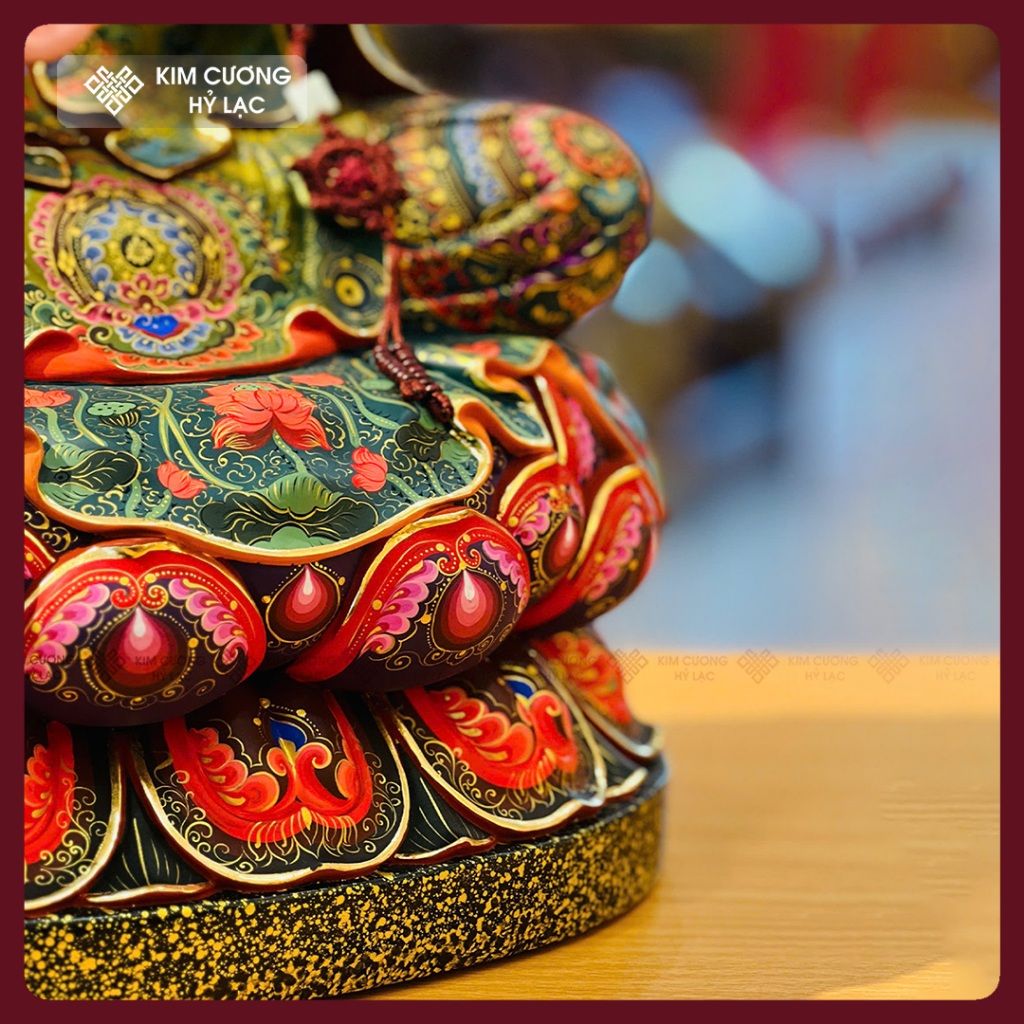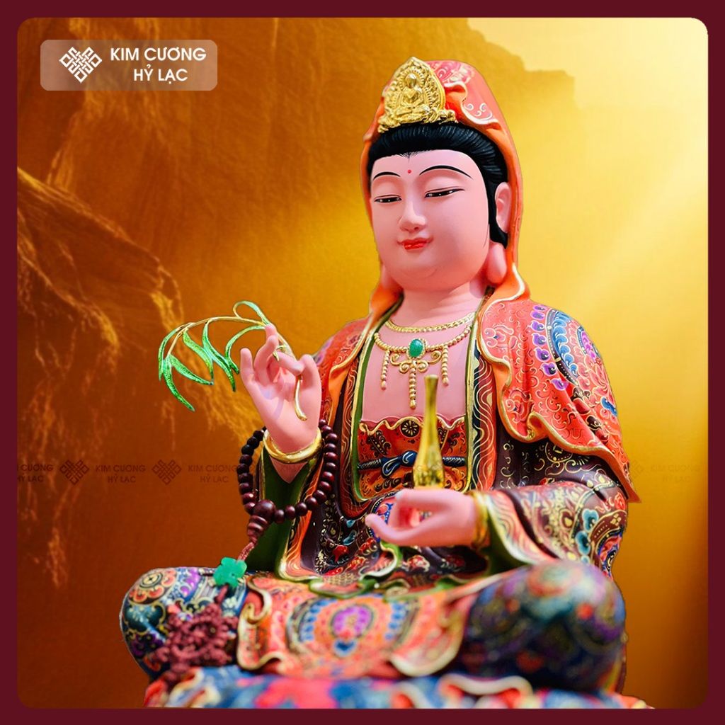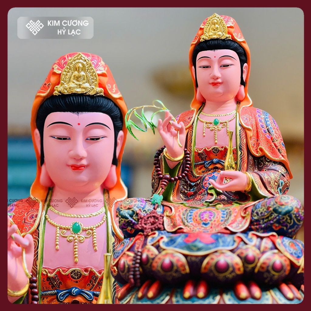 Tượng Quan Thế Âm Bồ Tát Bằng Gỗ Long Não Tự Nhiên [Kim Cương Hỷ Lạc] Tượng Quan Âm Vẽ Màu Lụa